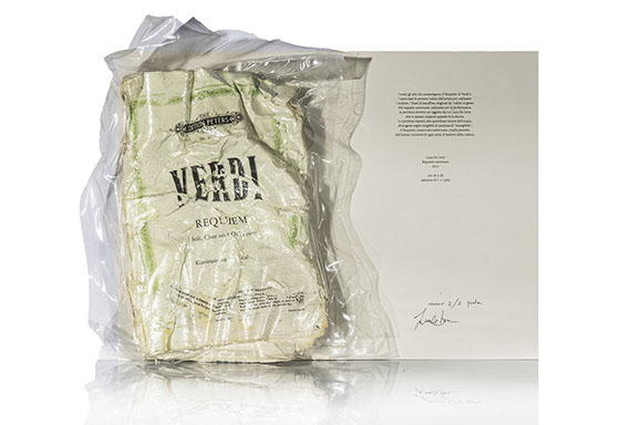 the score becomes an object from which Luca De Leva is never separated, not even when he has a shower. The scores, exposed to the daily action of water, become a tangible sign of something ‘intangible’. The vacuum-sealed Requiem is protected from the corrosive action of every kind of cultural bacteria.