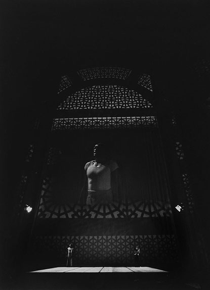 cioè l’accostamento di elementi eterogenei provenienti dalle arti visive, dalla musica, dalla danza e dall’universo delle parole. Lo scenario, un monumento