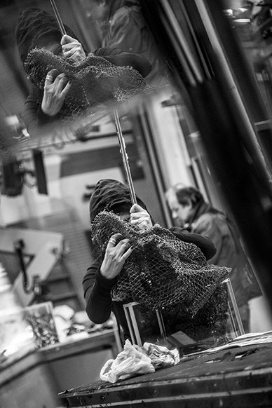 Emily Jacir, mentre lavora con Graziella Bertolini di artache ad alcune delle Stazioni della Via Crucis, realizzate a Milano, 2015. Emily Jacir, Via Crucis (2013 – 2016), installazione permanente nella Chiesa di San Raffaele, Milano, una commissione di © artache; © Emily Jacir 2016 all right reserved; photo credits: Fabio Mantegna